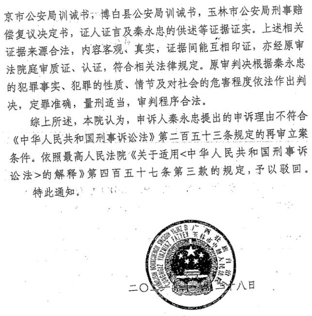 更值得关注的是,秦永忠曾因涉嫌敲诈勒索被刑事拘留38天,后被检察院不批准逮捕,最终获得国家赔偿。但这份赔偿决定本身也存在瑕疵——玉林市公安局维持了博白县公安局的赔偿决定,却未对秦永忠与陈国汉同等羁押期限、不同赔偿金额的问题作出合理解释。这一不公,不仅成为秦永忠持续信访的重要原因,更印证了其申诉的正当性,而非法院认定的“无事生非”。